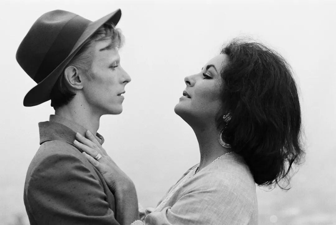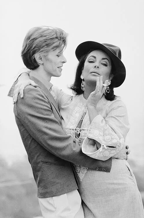 Singer David Bowie shares a cigarette with actress Elizabeth Taylor in Beverly Hills, 1975. It was the first occasion that the pair had met.