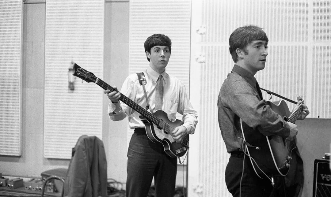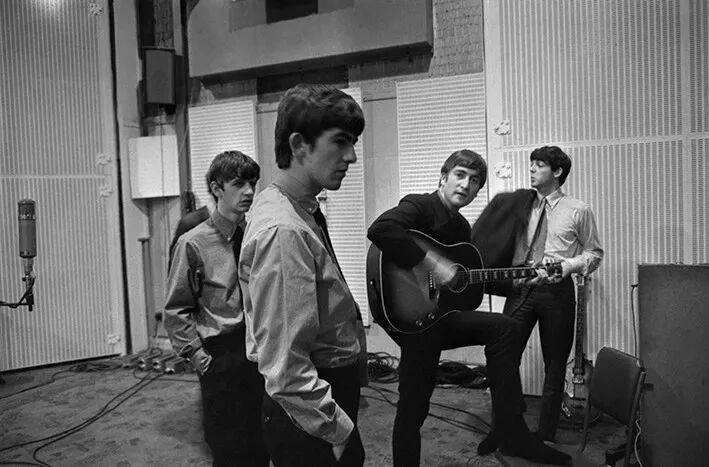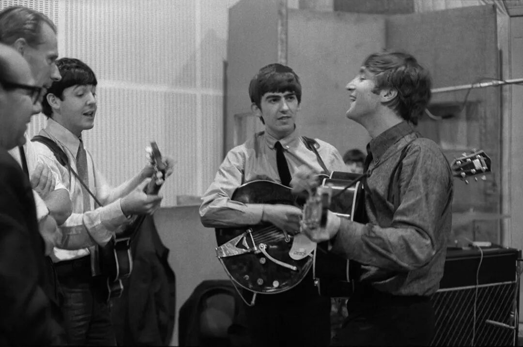 The Beatles are recording their first hit single and album ‘Please please me’ in January 1963 at Abbey Road Studios in London.