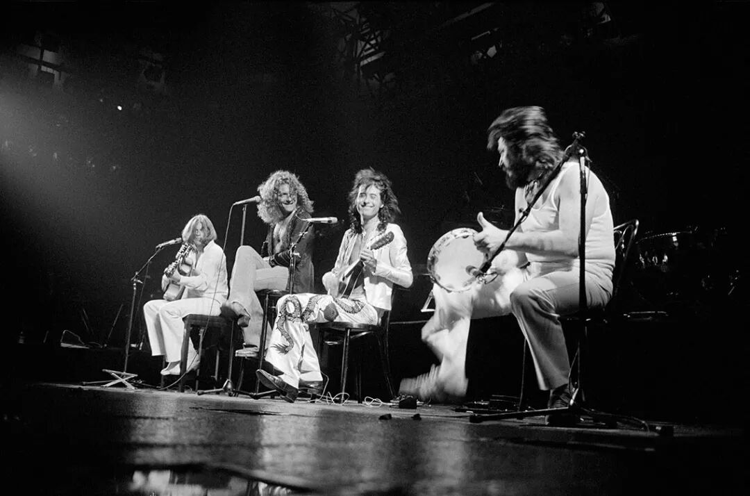 English rock band Led Zeppelin on their US tour at Tampa Stadium, Florida on 5 May 1973. They played to 56,800 fans.