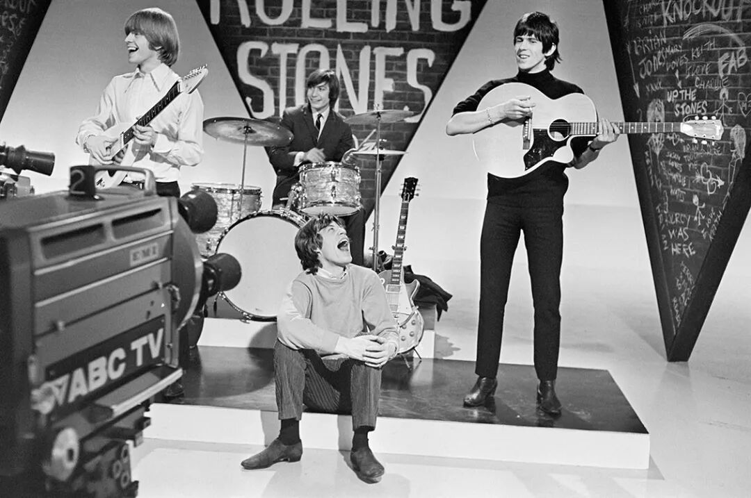 The Rolling Stones during a rehearsal for ABC’s ‘Thank Your Lucky Stars’ TV pop music show, 1964. From left to right Brian Jones, Bill Wyman, Mick Jagger and Keith Richards.