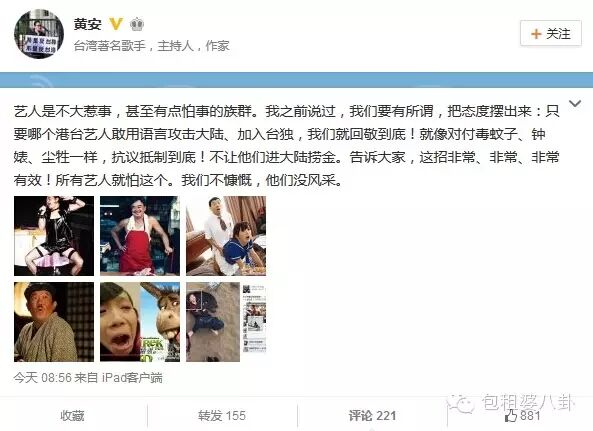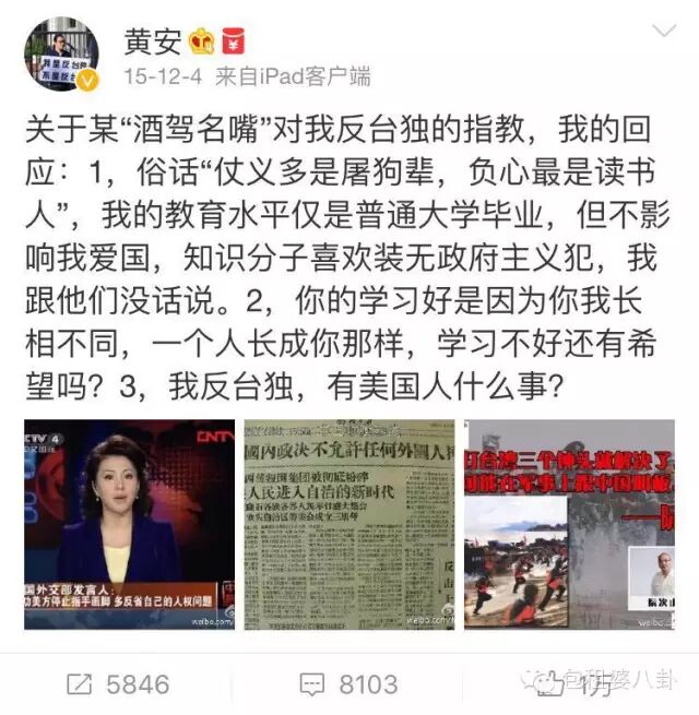 黄安的立场就是绝不容许有人在大陆赚钱支持taidu