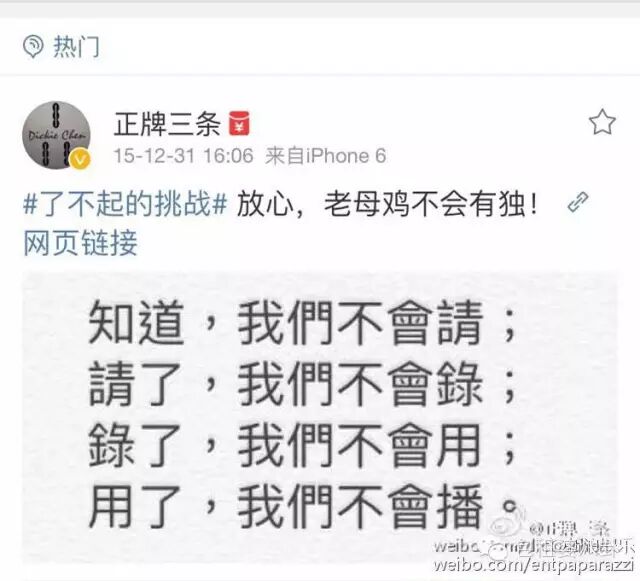 因为涉及政治,《了不起的挑战》总导演紧急发表声明称不会播出有关他的所有镜头