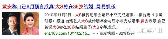 更厉害的是黄安还预言“大S的感情生活也不是很顺利,但她会在36岁的时候结婚生子。”