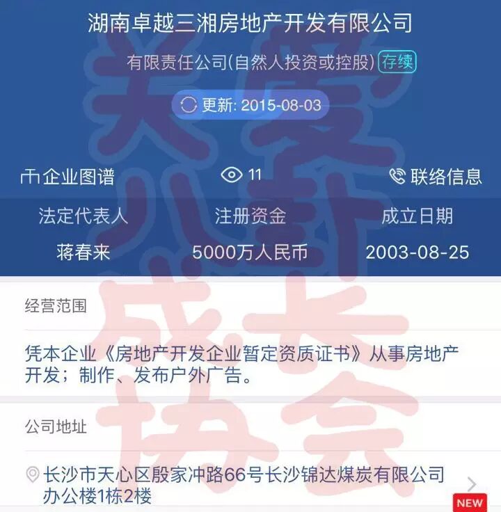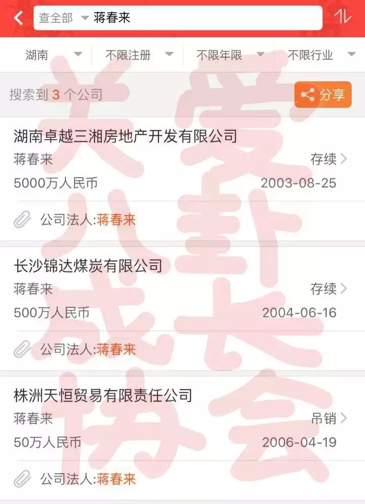 除了黄子韬的爸爸,我还顺便查了下这几天同样很火的蒋劲夫的爸爸,蒋春来。发现“蒋春来”在湖南有三家公司,两家在长沙,但是不排除是同名同姓,总之贴出来给大家看看,欢迎有料的小老婆尤其是湖南长沙的小老婆给我们来信啊!