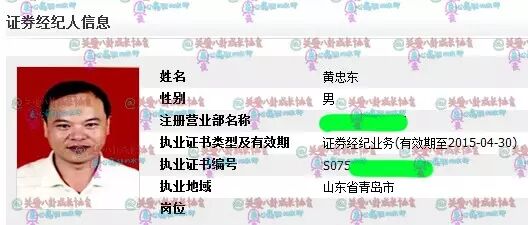 根据小老婆的提示,我在证券公司的官网上果然搜到了黄子韬爸爸的信息,这张证件照也跟媒体上曝光的照片吻合,可以确定是本人。