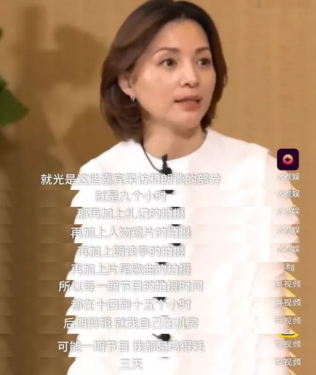 “她说开场要的是一口气,坐着气势就弱了,所以每次开场她都站着录,并且为了给观众最好的姿态,还坚持穿高跟鞋。说完了开场白,才会换上平底鞋坐下。”