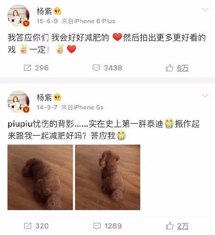 不仅说自己喝凉水都长胖,不好减肥,还在微博上直播自己的减肥历程和食谱,稍微瘦一点都会跟大家及时汇报。