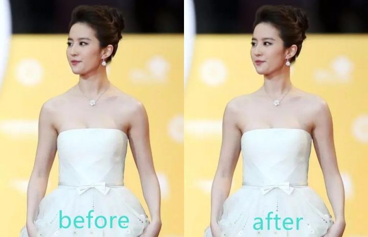 把仙女姐姐的肩膀P平一点,气质立刻up了不少。