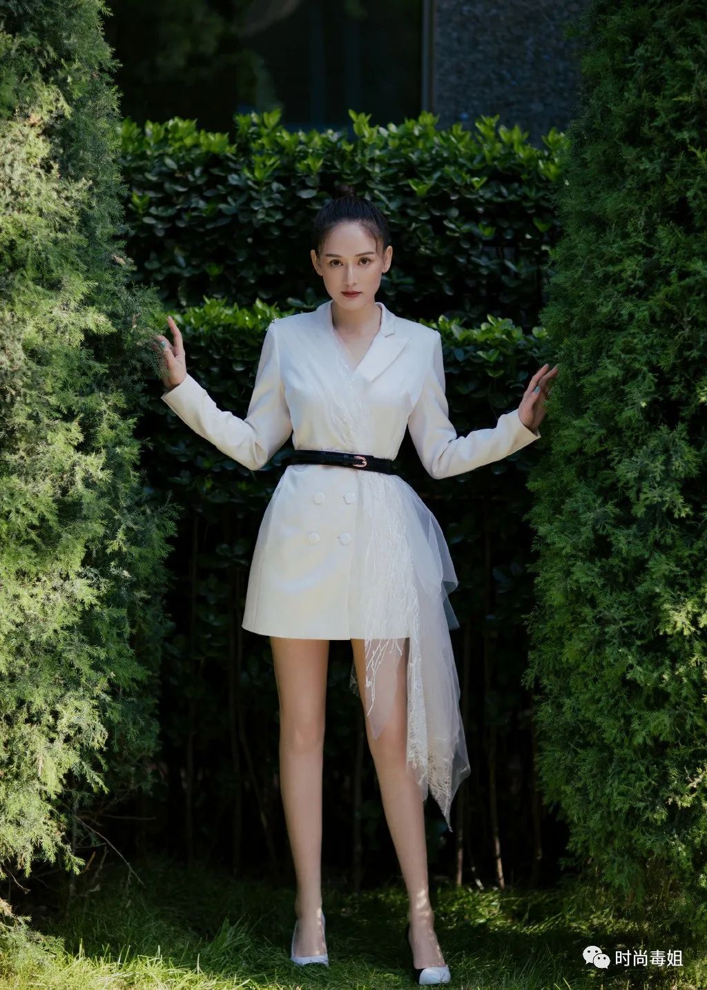 陈乔恩出道这么多年,列入过大大小小的举止,西装造型也有很多。她每次都能穿出本人的样式。