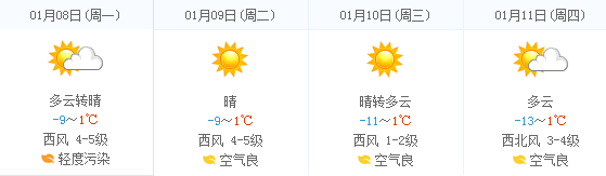合肥市气象台1月7日11时40分发布寒潮蓝色预警信号。受寒潮影响,48小时内我市最低气温将下降8℃以上,平均风力可达4-5级,阵风7级。预计9-10日早晨最低气温-10度左右。