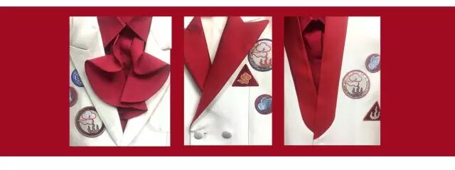 在今晚的鸡年舞台上,他们身穿红白双色西装登场。红白色块的拼接,配以翠竹刺绣与青花瓷、祥云等中国元素制成徽章的点缀,倒也是符合浓浓的中国味儿。