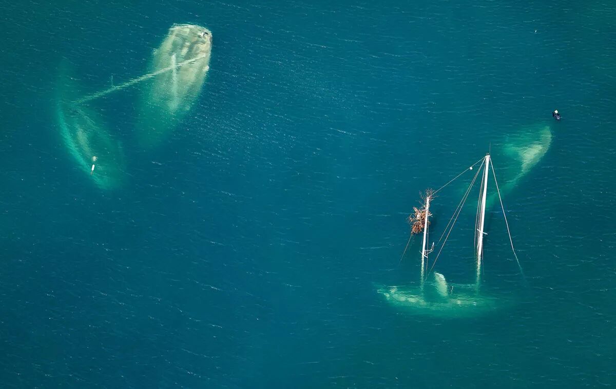 06.2017年9月16日,飓风艾玛席卷圣约翰岛12天之后,几艘在飓风期间沉默的船只栖息在圣约翰湾。