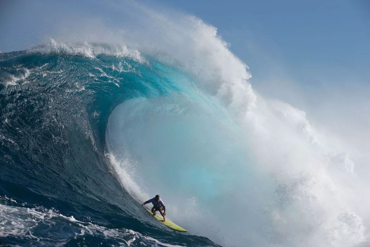 30.2017年10月28日,夏威夷毛伊岛海岸外,绰号“河马”的澳大利亚选手 Ryan Hipwood 在 Peahi 冲浪挑战赛上。