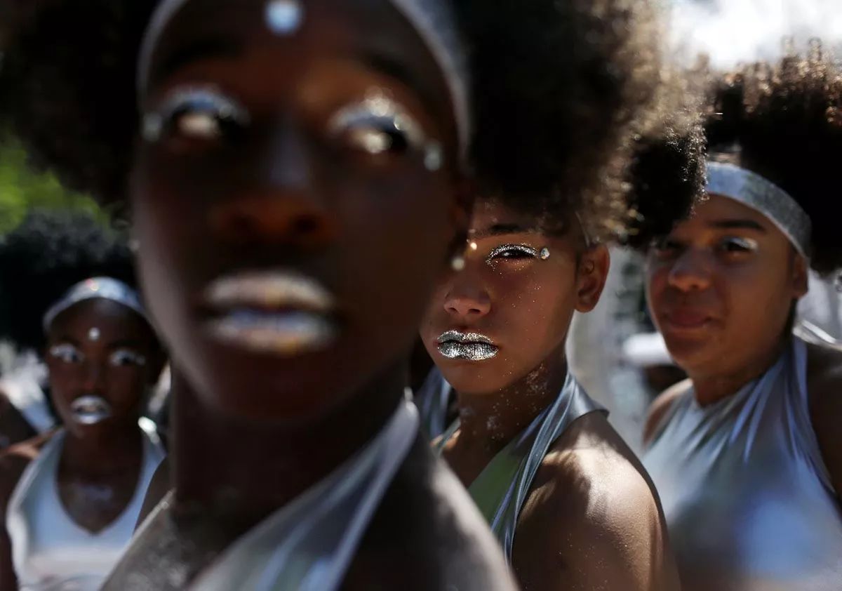05.2017年9月4日,纽约市布鲁克林区,庆祝加勒比狂欢节期间,The Visions in Motion 舞蹈团准备向东公园路行进,参加美国西印度群岛日大游行。
