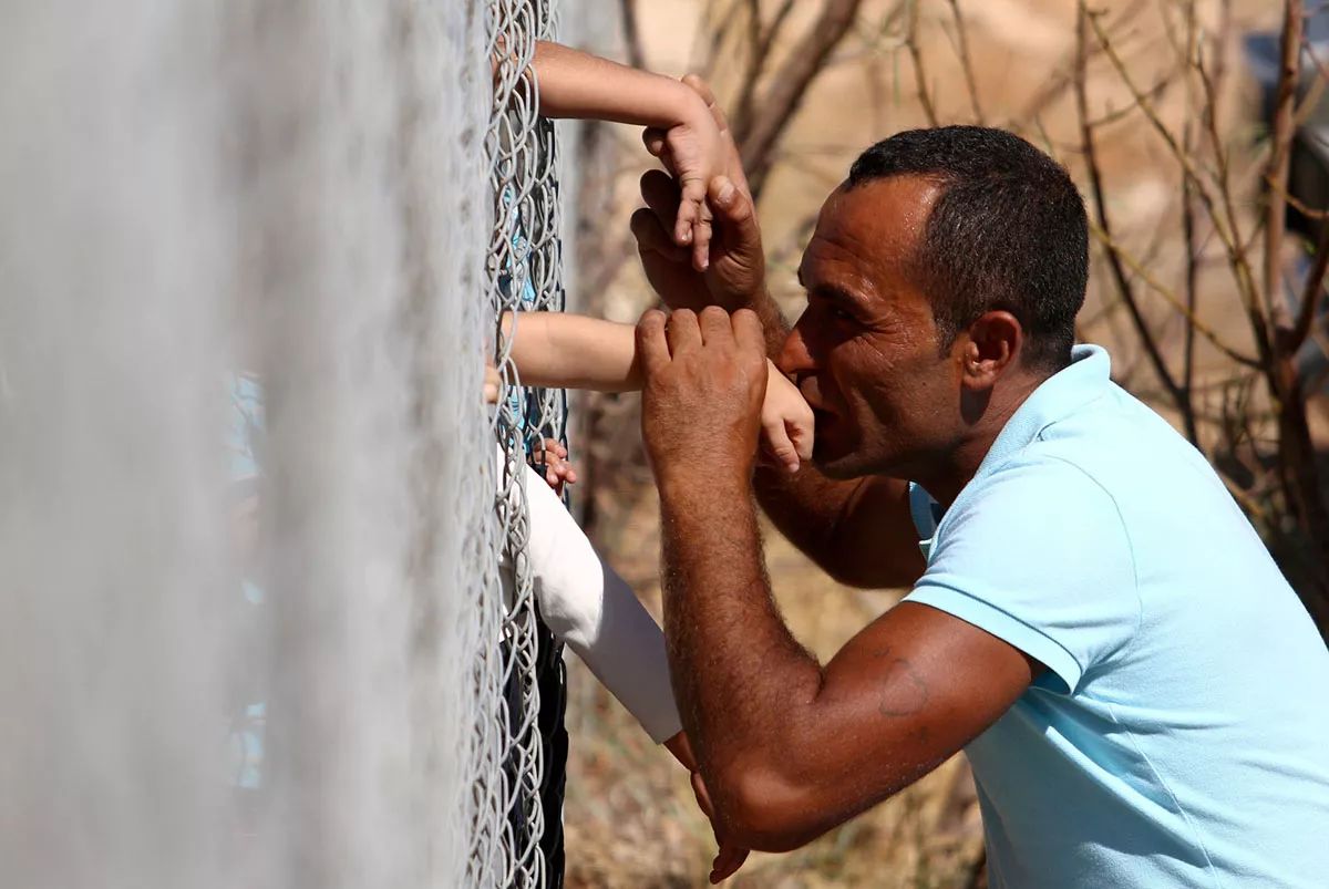 04.2017年9月10日,塞浦路斯尼科西亚郊外,如今生活在塞浦路斯的叙利亚难民 Ammar Hammasho 亲吻他刚刚抵达 Kokkinotrimithia 难民营的孩子们。