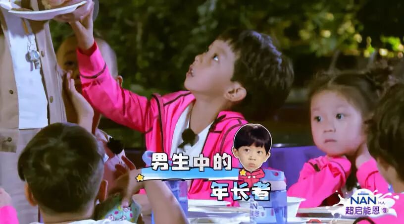 本来小朋友们有秩序“嗷嗷待哺”的画风却因为云飞的闯入变得混乱了起来,人小鬼大的云飞提议先从男孩中最年长的孩子开始分起,是的,就是他本人↓