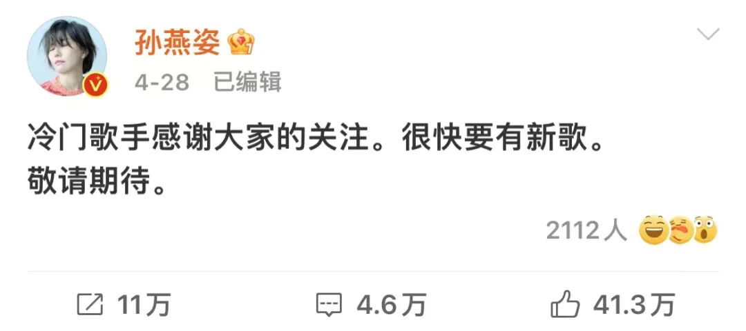 孙燕姿当天就对热搜进行了回应,并表示很快就要有新歌,甚至将9月份的线上演唱会幽默取名为「这个歌手不太冷」。