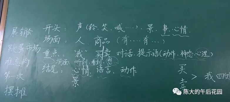继“笑话比赛”后,咱们级部开展了“小小展销会”,这也是课本上的口语交际题目。一周前,大家就商定好章程,编成信息发送各自的班级群,预想好活动结束后的写作指导步骤。课上,有意识地渗透本次活动的训练重点“对话”和“场面”描写,赏读精彩语段,进行迁移运用的练说。