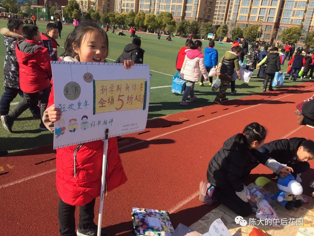 我们在跑道上摆摊,不久,整个跑道都是人,挤得水泄不通,琳琅满目的商品让人眼花缭乱,有文具、有书、还有玩具……
