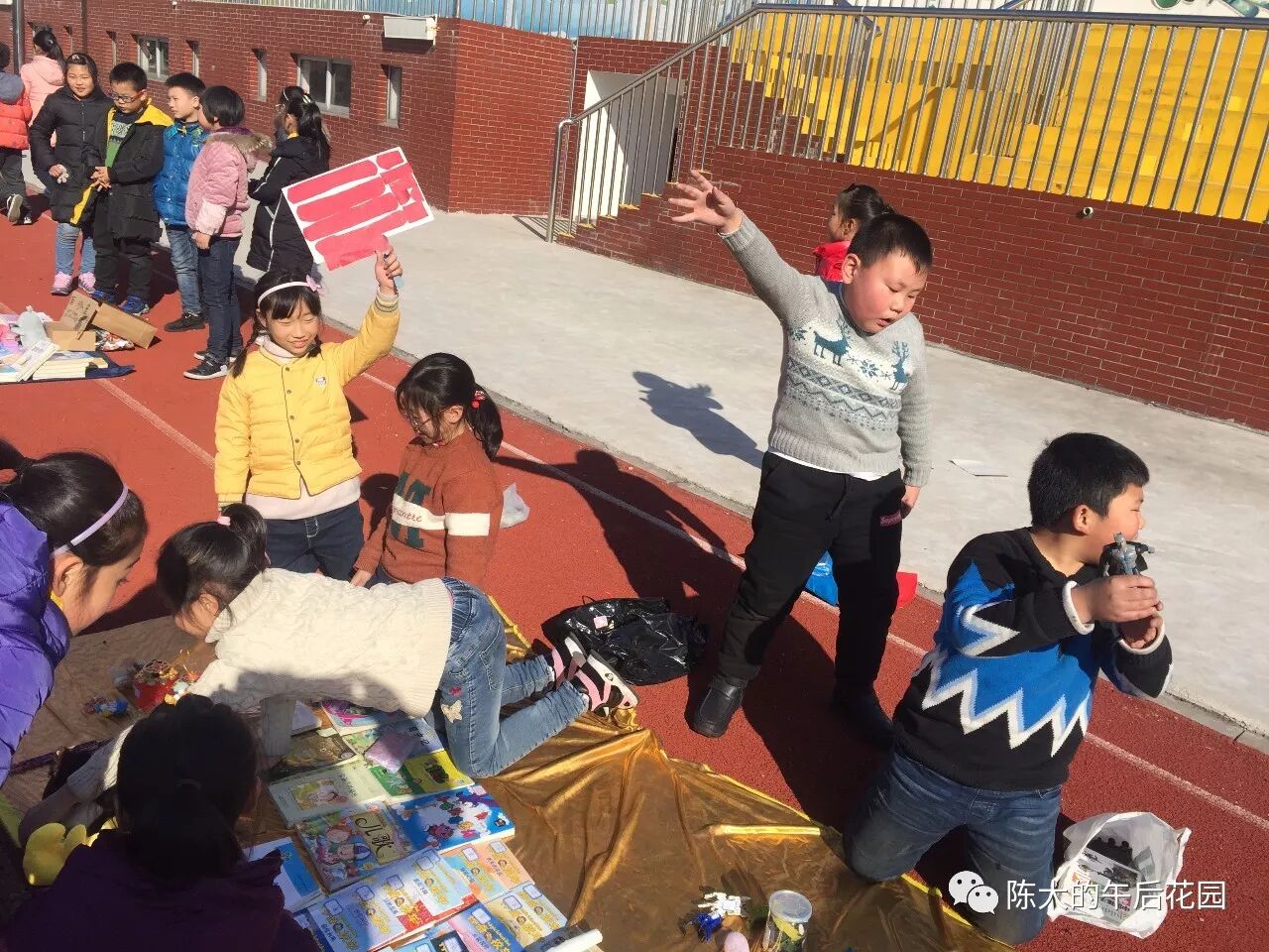 随着陈老师一声令下,同学们纷纷抱着大大小小的包裹向操场涌去,三下五除二就把摊位摆好了。