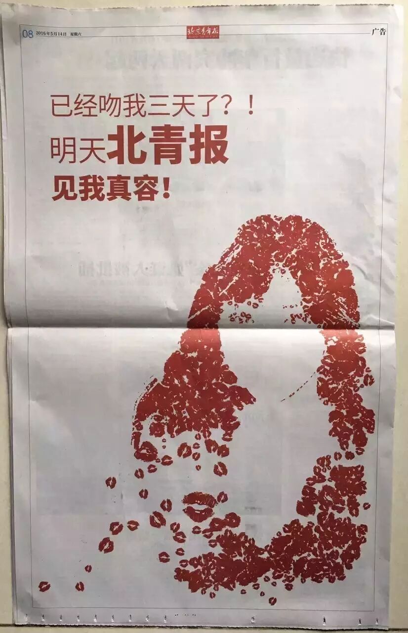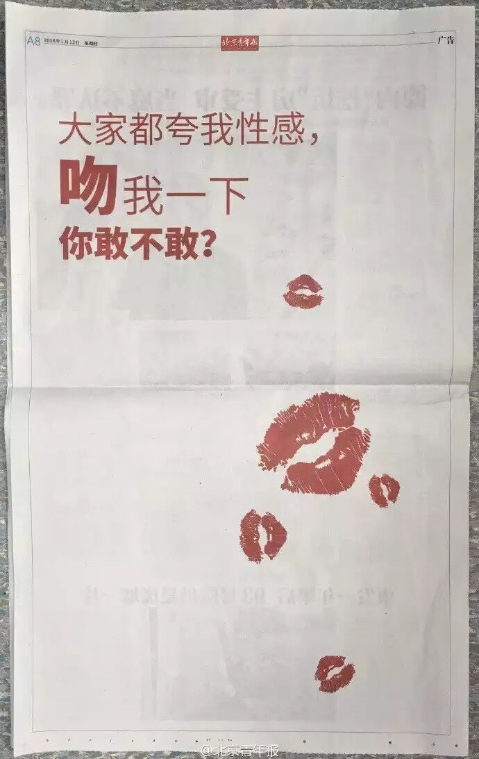 前期已经在纸媒上发布了性感的「索吻」广告: