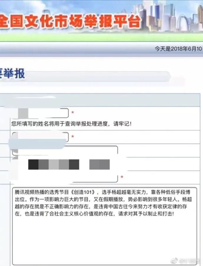 部分王菊粉丝直接向文化部举报整个《创造101》选秀比赛。