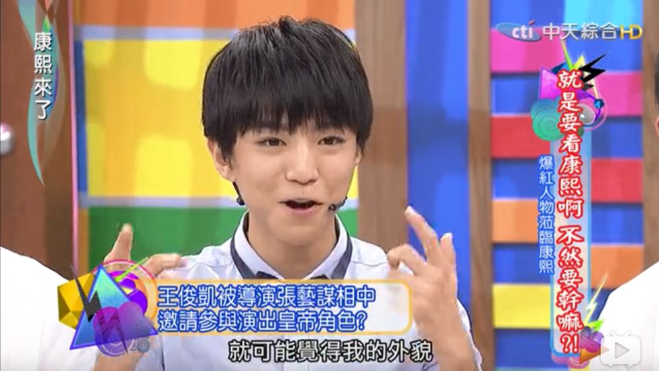 《康熙来了》之中,蔡康永问:“俊凯去演戏这件事情,是导演有觉得你可以表演了是不是?可以揣摩皇帝的心情?”