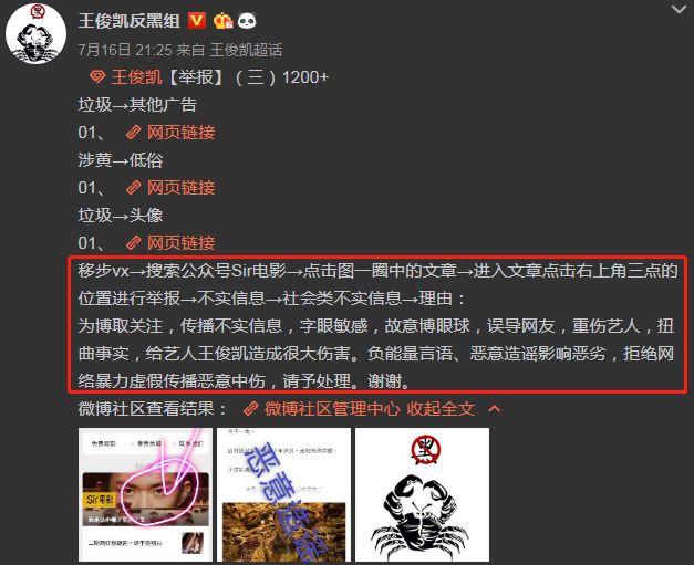 日以继夜地发动粉丝,提供举报链接。