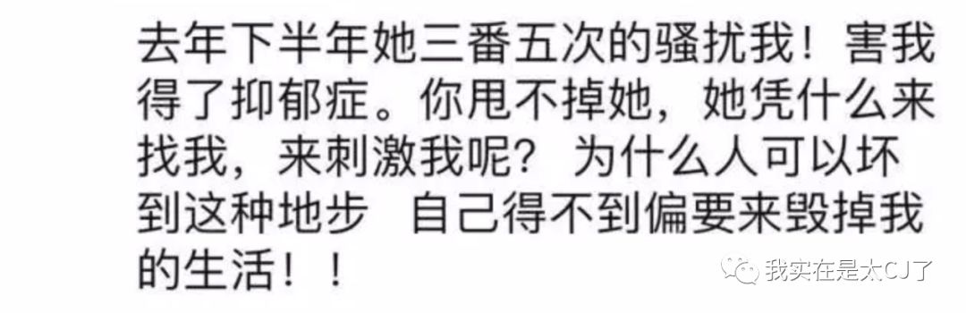 在陈昱霖的自述里,吴秀波和张芷溪断得不干净,所以张芷溪频繁骚扰自己,以至于自己在百般刺激后患上抑郁症。
