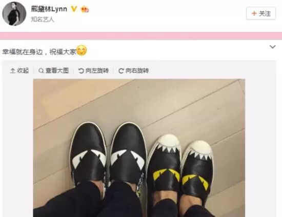 当时旧爱熊黛林不甘示弱晒出情侣鞋,喊:“幸福就在身边,祝福大家!”