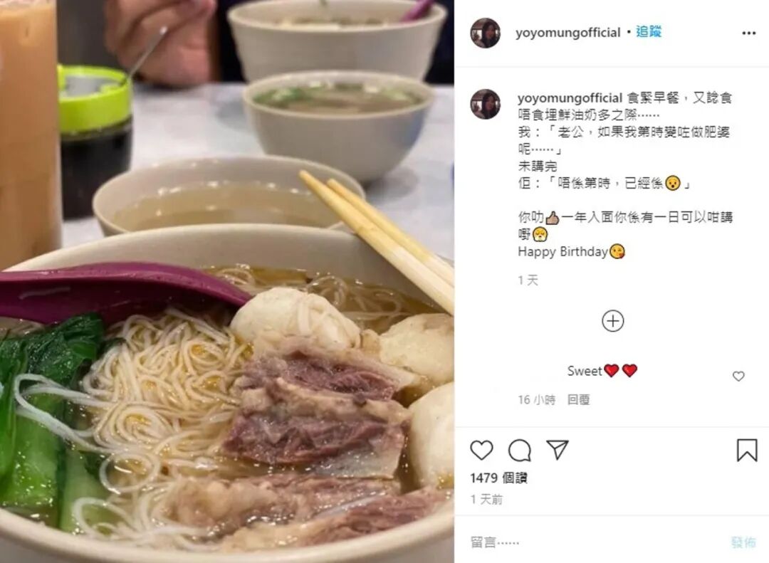 不过疫情关系,二人留港一样不减恩爱,日前郑伊健迎来53岁生日,蒙嘉慧分享对方的「肥婆论」,成另类放闪。蒙嘉慧问:「老公,如果我第时变咗做肥婆呢⋯⋯」而郑伊健秒回:「唔系第时,已经系」。虽然被揶揄,但蒙嘉慧笑指是郑伊健生日,故放他一马。