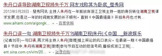 更糟糕的是,事后“朱丹口误导致湖南卫视损失千万”的说法也满天飞,据说湖南台高层因此震怒不已,于是朱丹也就此被罚“下课”,惨遭芒果台封杀。