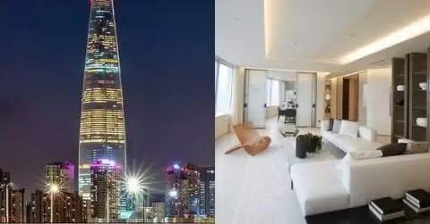 赵寅成所购买的Signiel Residences位于韩国最高的地标建筑-Lotte World Tower内,这座大厦也是世界第5高建筑。共129层,42~71层就是Signiel Residences,每坪(3.3㎡)售价7500万~8000万韩币。
