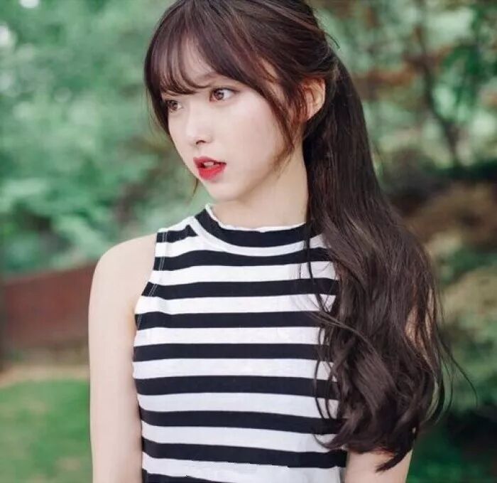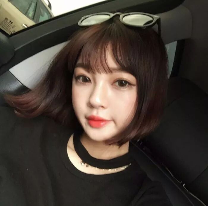 圆脸妹子的空气刘海也可以考虑元气刘海,脸颊两边修饰脸型的碎发也不能少。