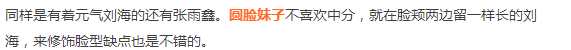 心形脸的欧阳娜娜也留过元气刘海,不过有美人尖想留平刘海还是比较难打理的。