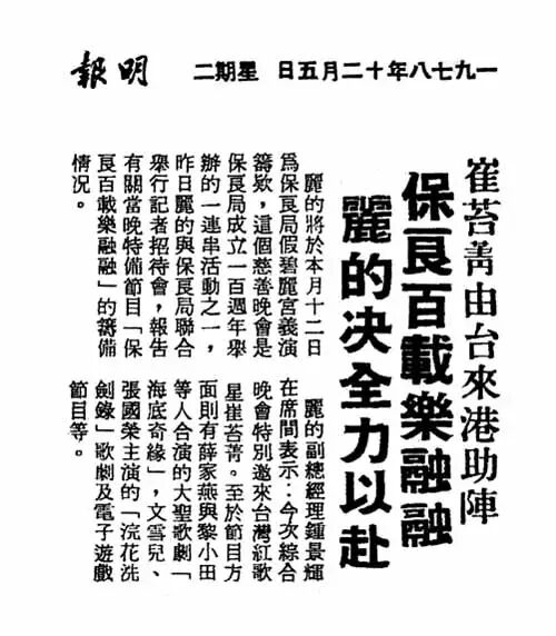6. 1979年3月24日,参演为博爱医院举办的“博爱满人间”慈善筹款游艺大会。