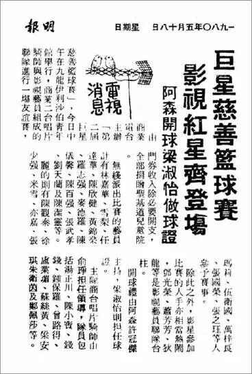 10. 1980年5月18日,参加第二届“巨星慈善篮球邀请赛”,全部门票收入及善款捐赠圣基道儿童院。