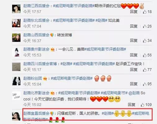 现在明星都流行一言不合关评论了,包括赵薇工作室的微博,同样关闭了评论,只留下了自家微博,评论的都是好的,还有赵薇宜昌后援会:闪耀威尼,为国争光!