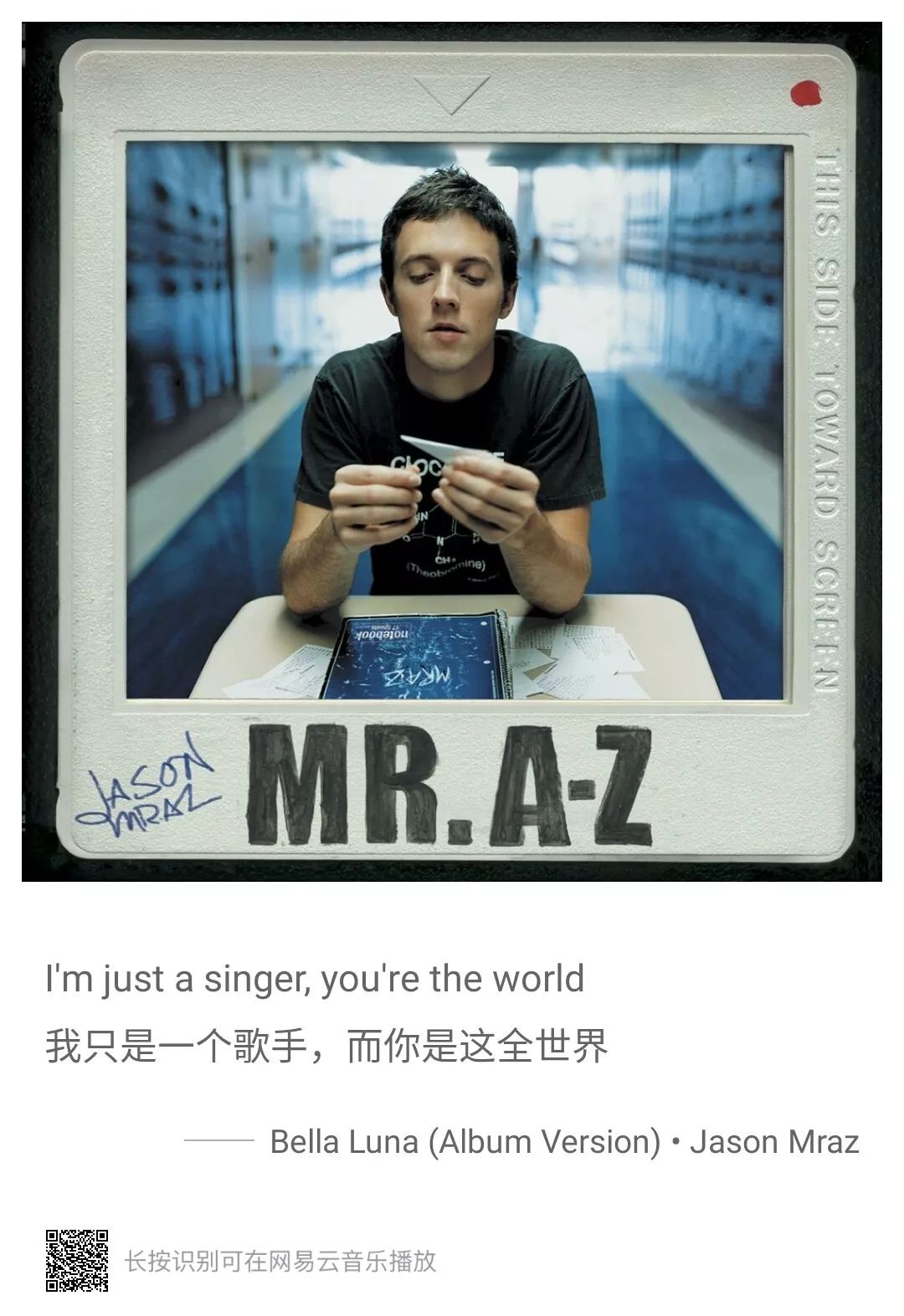 杰森·玛耶兹(Jason Mraz),美国创作歌手,从小在弗吉尼亚州列治文郊区的梅卡尼克斯维尔长大。《I'm Yours》是他最著名的歌曲。杰森·玛耶兹能演唱多种音乐类型,包括:流行音乐,摇滚,民族音乐,爵士乐,乡村音乐、Hip Hop等。他曾与多位著名歌手合作,包括:滚石乐队、迪伦、詹姆仕·布朗特、葆拉·科尔、詹姆斯·莫里森、戴夫·马修斯乐队、加文·德格劳、约翰·波珀、艾拉妮丝·莫莉塞特、雷恰尔·亚马加塔、Ohio Players、朱厄尔、科尔比·凯拉特等。