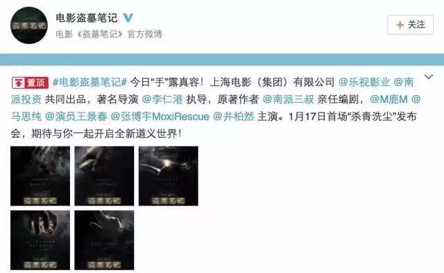 之前,电影《盗墓笔记》杀青并曝出第一组角色海报,而鹿晗饰演的“吴邪”和井柏然饰演的“张起灵”之间因为海报排位闹出矛盾。