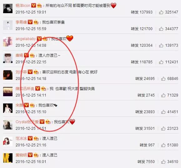 《罗曼蒂克消亡史》上映第七天,王家卫梁朝伟金城武的男神组合电影《摆渡人》上映。但电影上映后立刻遭遇口碑危机,男神有男神要的面子和固执,王家卫几乎发动娱乐圈大半壁江山在微博转发“我喜欢”,王传君一句“我不喜欢”一时成为异类,顺利被送上当天热搜。