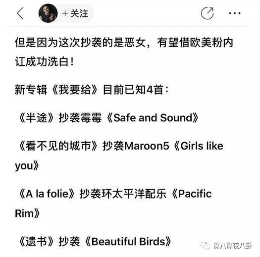 跟老胡被结婚的乌龙相比,另一桩事更令小主震惊。年底扎堆发片的歌坛天后里,竟然有人陷入了【抄袭门】