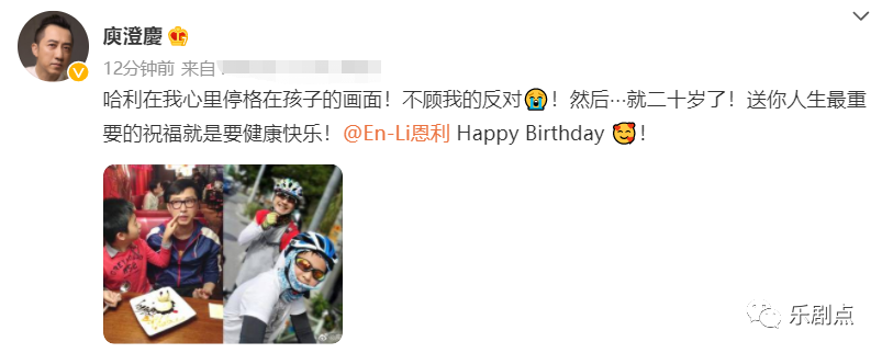 庾澄庆跟前妻伊能静虽然离婚多年,且再娶生娃,但他对长子哈利的爱从来没改变过。一直很少公开家庭照的他,趁着儿子20岁生日之际,跟粉丝们分享了2张父子俩昔日合影。第一张照片,父子俩在餐厅吃蛋糕,儿子将蛋糕抹在庾澄庆脸上,庾澄庆则一脸无语,画面很是温馨。另一张照片,父子俩穿上一身装备,一起到户外骑单车。难得与儿子出游,庾澄庆笑得合不拢嘴。