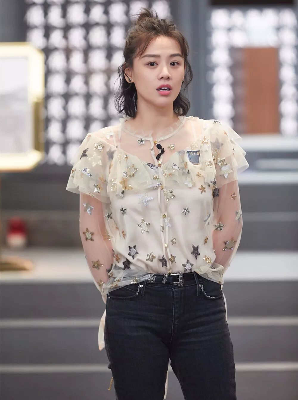 马思纯上节目时穿了Si Ran的米色纱质衬衫,上面星星点点的装饰童心满分。