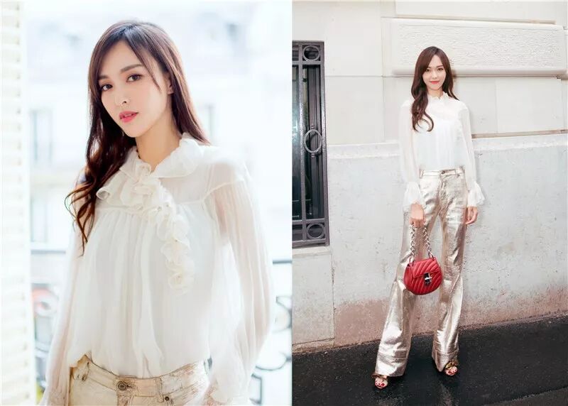 唐嫣之前出席巴黎时装周的这身荷叶边透视雪纺衬衫搭配金属高腰裤,复古中不失甜美少女气息,是仙女美糖没错了!