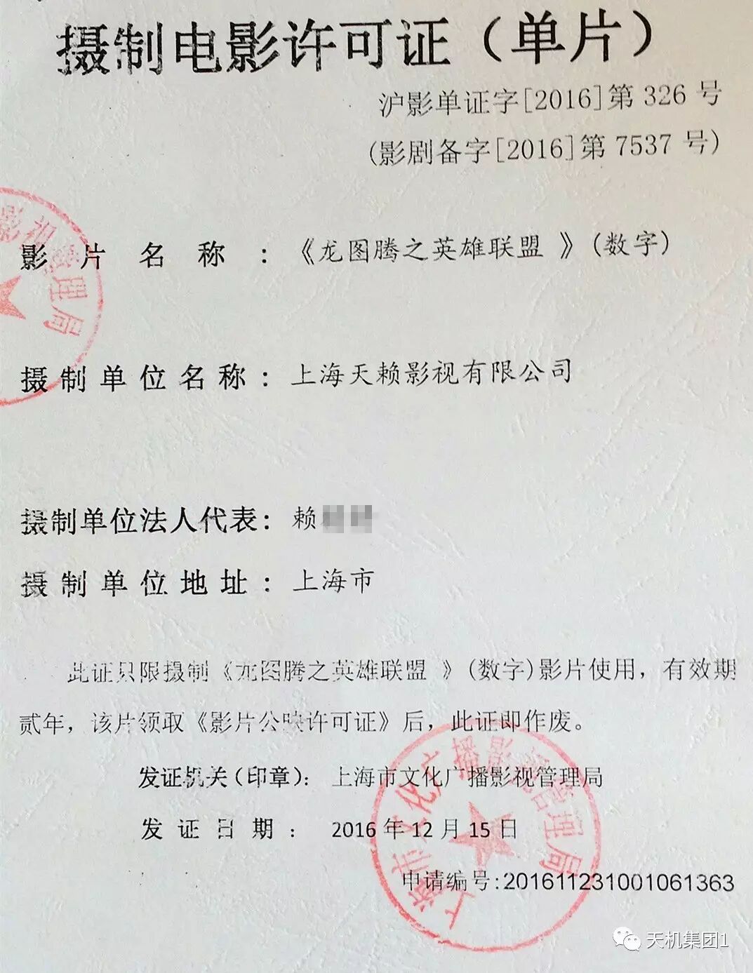 天赖影视(股权代码209762)董事长