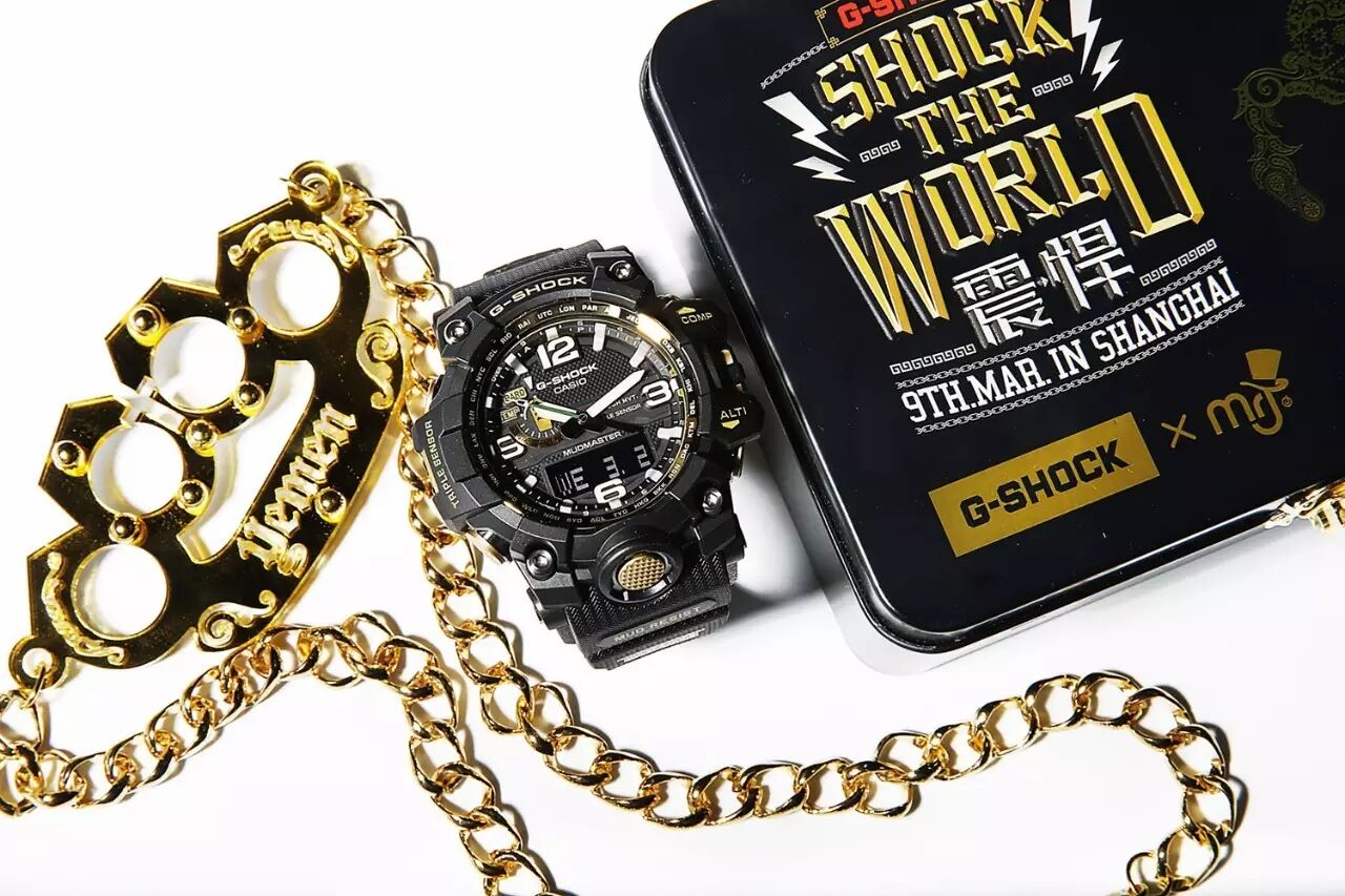 错过这次 SHOCK THE WORLD 演唱会的朋友们也不用伤心,G-SHOCK 与周杰伦的原创品牌 MRJ 联名的 G-SHOCK 将在 3 月 12 日上架。黑金色的 Master of G 专业型号 GWG-1000GB 连同特别颈鍊和礼盒限量 100 套,将在 G-SHOCK 专卖店发售。