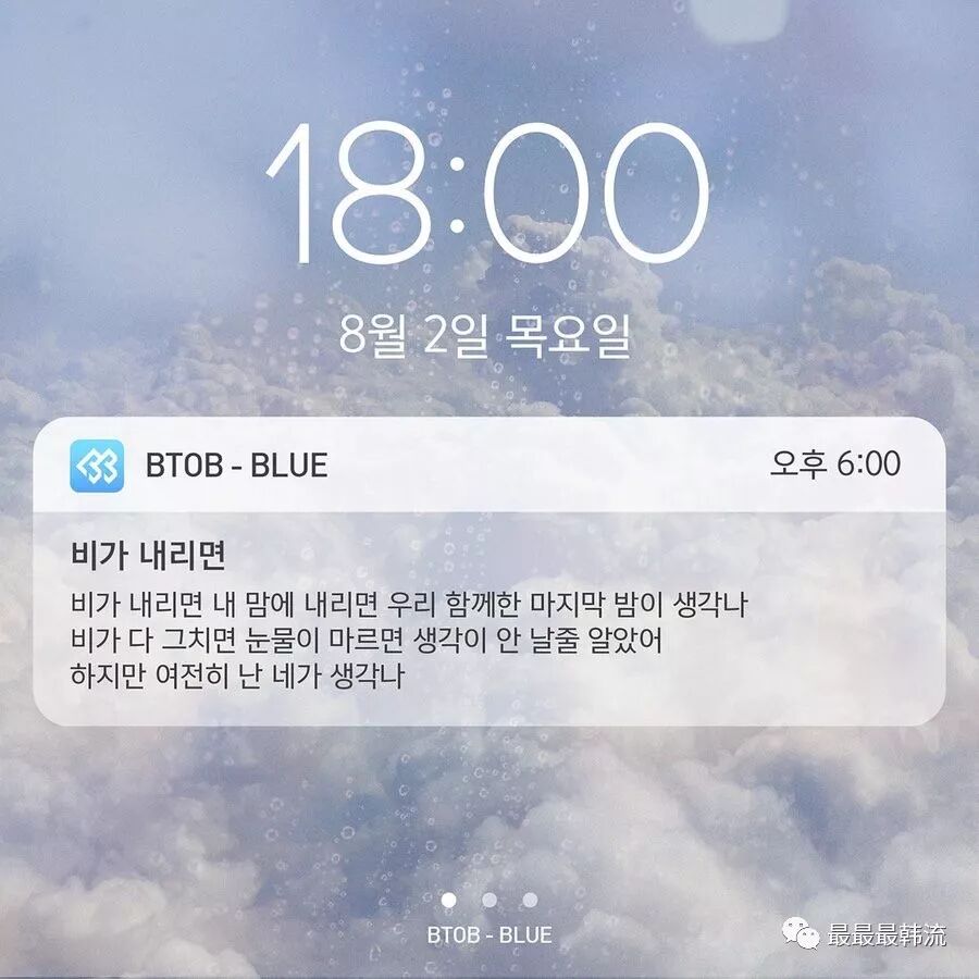 今天下午6点我们BOTO小分队BTOB-BLUE的新歌《如果下雨的话》就跟大家见面啦!