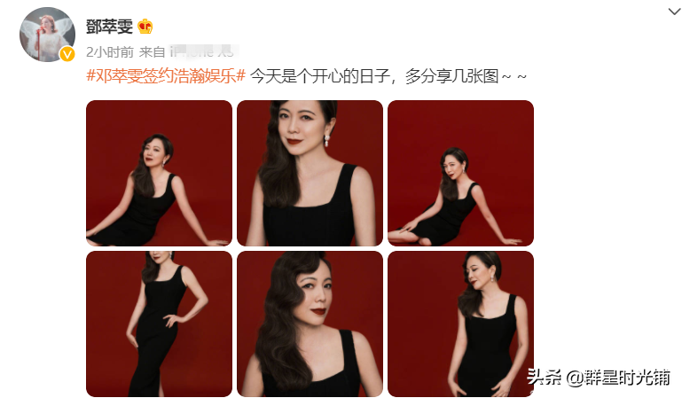 宣布签约的同时,邓萃雯在社交平台上晒出一组自己身穿黑裙的照片,从照片上可以看出,年过半百的她身材依旧纤细。岁月在邓萃雯的脸上留下了痕迹,却让她看起来更加成熟,风韵犹存。
