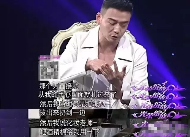 刀子戳进手心,简单的酒精消毒之后,又忍着十指连心的痛苦,继续拍戏。
